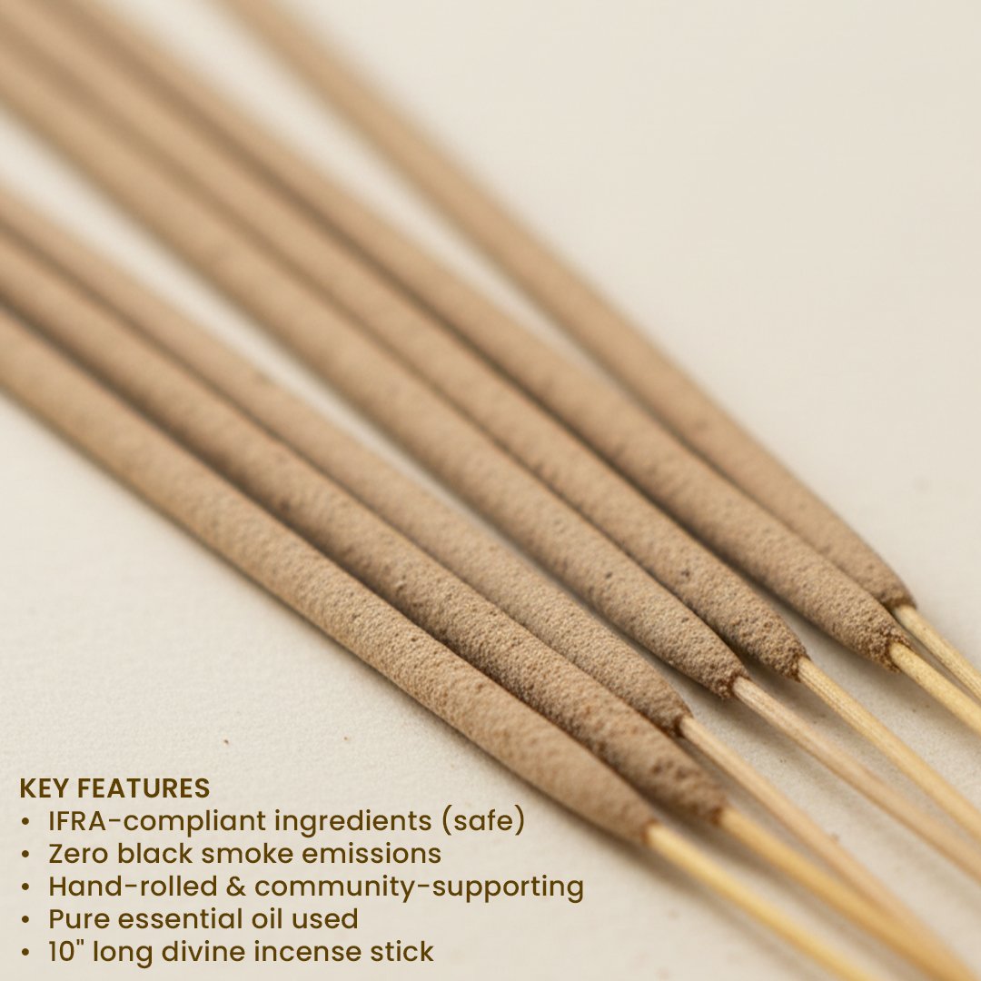 Leaves behind only a trace of ash and a lingering sense of peace — ideal for puja rooms, yoga studios, and healing spaces.